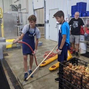 • Washing | Dumping produce into industrial washing machine and then distributing into smaller buckets.